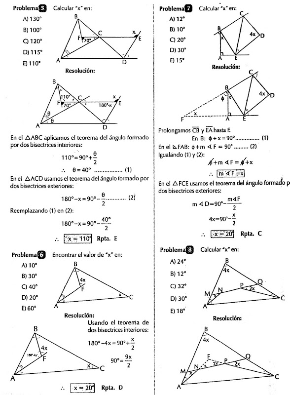 Angulos formados por dos rectas de un triángulo - Problemas resueltos - Geometría - Teorema de las bisectrices exteriores - Teorema de una bisectriz interior y exterior - Teorema de dos alturas - Teorema del cuadrilatero no convexo